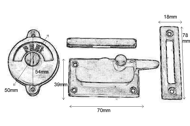 Frei-Besetzt WC-Verschluss Messing poliert 70×39mm