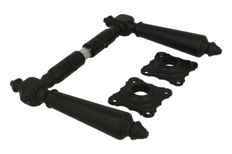 Drückerpaar, mit Drückerrosetten. Auch für den Außenbereich geeignet