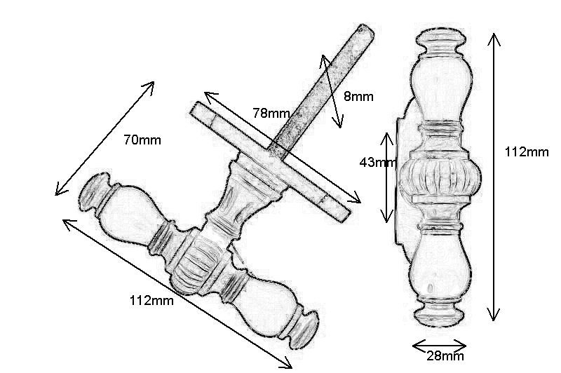Türgriff T modell Messing poliert Ebenholz Drückerpaar